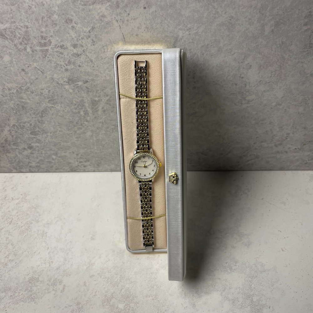 A perfect harmony of modern design and timeless luxury. This dual-tone watch features polished stainless steel in elegant contrasting shades, offering a versatile look that suits every occasion. Resistant to fading and tarnish, it’s made to keep you shining every day.